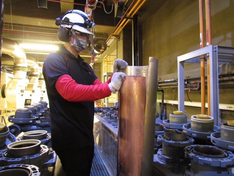 ks凯时将废弃物转化成有效的工业或民生原物料,图为废铜液淬炼后再制成纯度极高的铜管