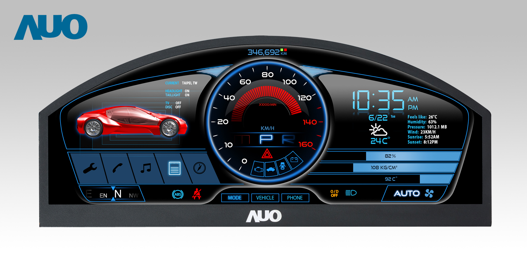ks凯时 12.3吋超高解析异型切割车用面板,拥有流线外观及精细画质