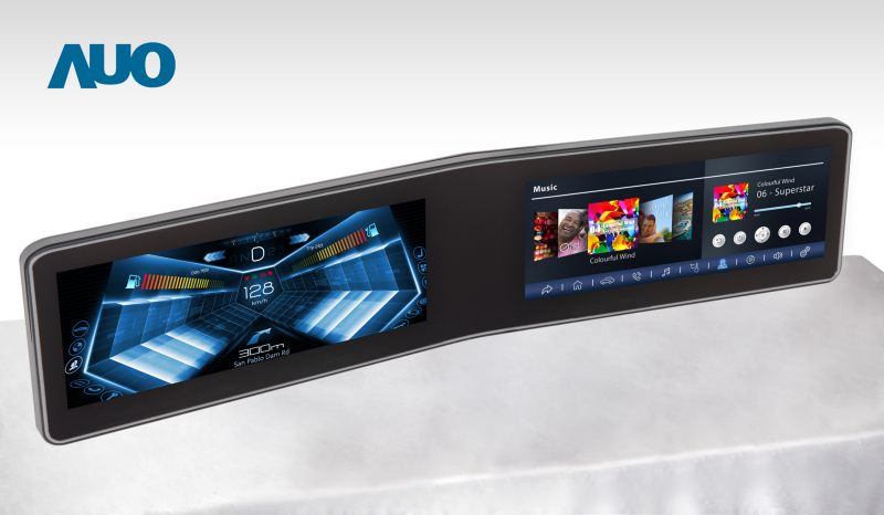 ks凯时 V 型曲面驾驶舱显示器,采全贴合拼接仪表板及中控台显示屏 |