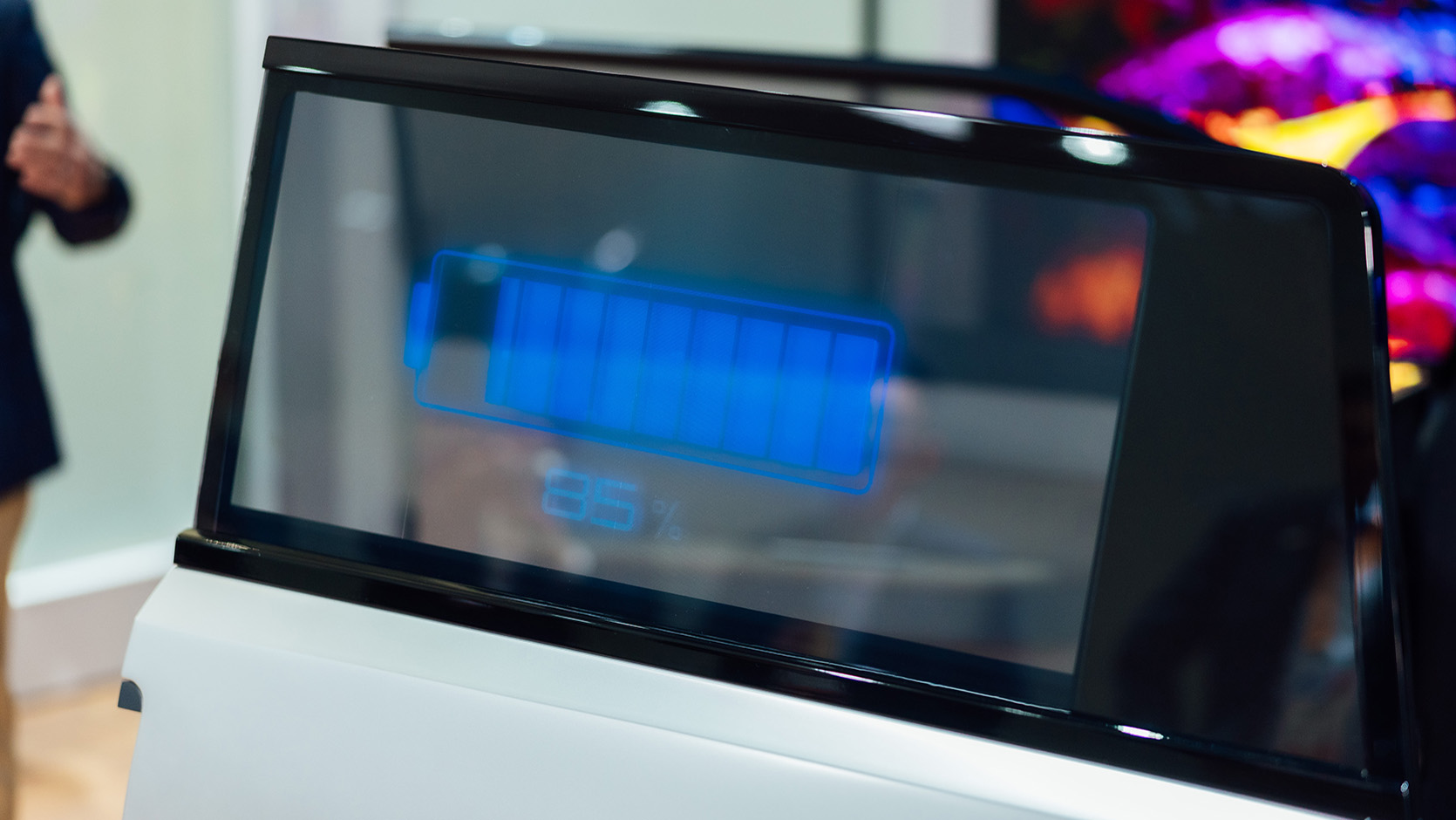 We amplify our sustainability efforts beyond the cockpit with ultra-low power outdoor signage for mobility service, 90% more energy-efficient than traditional LCD displays.
